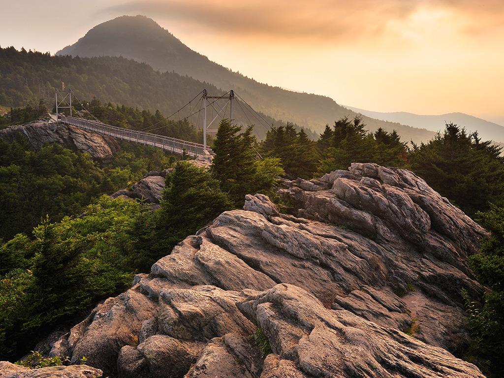Grandfather Mountain. We drove most of the way up but did a short hike to the top. The big news is, Puddin' climbed it herself. She needed a little bit of help climbing up rocks half her height but other than that she was a total trooper. Peanut was thrilled to be out and moving so she zoomed ahead repeatedly. Peanut often feels the need to blaze the trail and this was even more true out there on an actual trail. Monkey had a harder time getting engaged but eventually found her groove, looking at rocks.